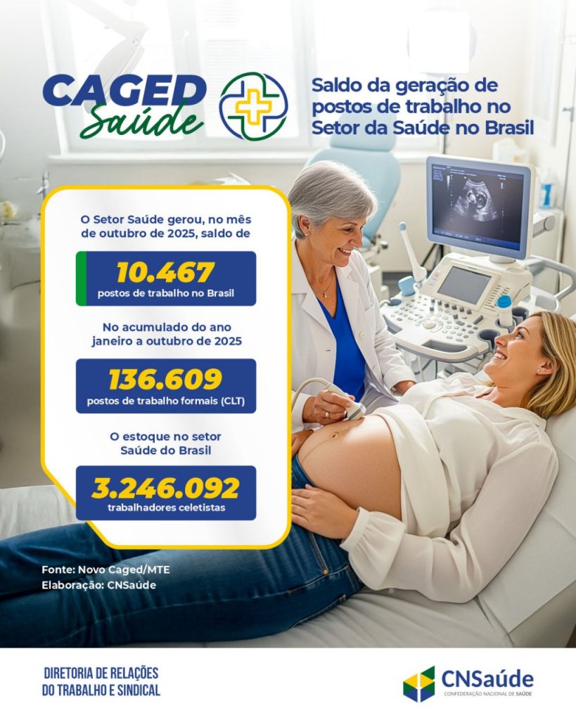 O Setor Saúde gerou, no mês de outubro de 2025, saldo positivo de 10.467 postos de trabalho no Brasil. No acumulado do ano (janeiro a outubro de 2025), foram 136.609 novos postos de trabalho. O estoque de trabalhadores celetistas no setor Saúde no Brasil é de 3.246.092. Os dados são do Novo CAGED (Cadastro Geral […]
